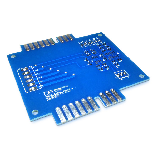 A small passive distribution board with input on 3.96mm pitch, six way Molex KK header and two edge connector outputs. Note there is no pass through or pull ups for the serial bus. Ideal for bench testing of modules or power distribution in a small boat.